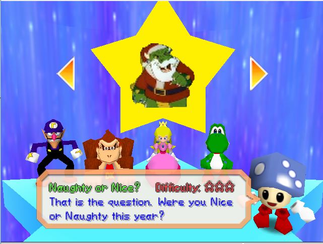 That is the question. Have you been Naughty or Nice this year? Have you got all your Christmas shopping done? Head down the path you want your Christmas to go, and whoever the Superstar is gets first pick for their Christmas present!