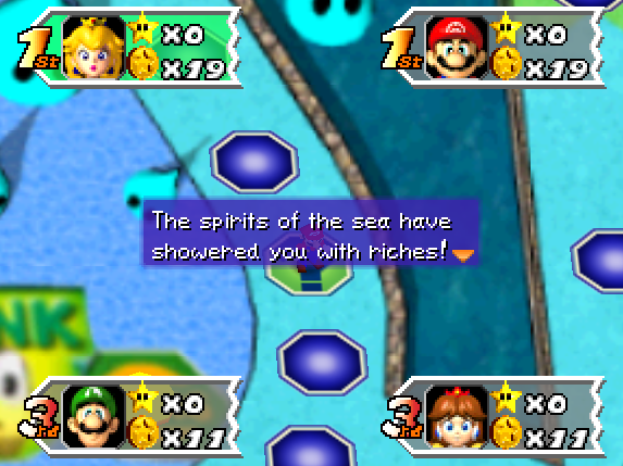 • v4.0: Water Island: The Happening Space now gives Coins only to the landing player, the amounts vary and align with Mario Party 3 mechanics.