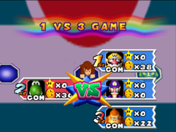 Switch Town is the second board that I have created. This board replaces Waluigi's Island. Switch Town contains three pathways, one being the long path, one being a medium path, and one being a short path. The question marks at every corner represent warp spaces to the left side of the board. The music is HOME - Resonance.