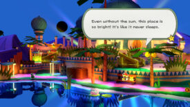 Look at this desert and its three million areas. After spending approximately four seconds in the Scorching Sandpaper Desert, you’re now in the lively and neon Shroom City. Since this is a town and a little more self contained, we’ll list the collectibles as they appear. We detail your return to the city under a different section below. Not interested in collectibles? Follow these quick bullet points on what to do: