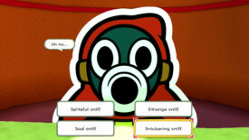 If you fail the minigame, the Snifit will give you the option of retrying for the mere and generous price of 1,000 coins, otherwise you’ll be sent inside the lamp where you’ll get a game over. With Luigi at least! Cough up the cash and play again. Once again, the first two options don’t indicate the real answer, but take note of what Snifit says before and during the third try. He’s starting to giggle! Ha! Pick the Snickering Sniff option to win!
