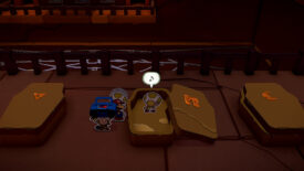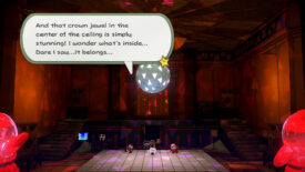 On the left side of the hallway is a switch that will move a sarcophagus to reveal a secret exit. This leads back to the light tubes room which you can use to get back to the disco room. Trying playing the four different DJ discs you have. The big bad on the other side of the door will hate them all except Thrills at Night. Play that one for it but it won’t come out to the dance floor until there are more people to boogie down with. Time to find those faceless Toads!