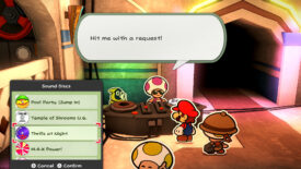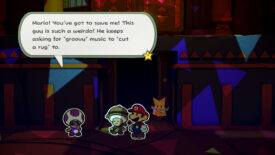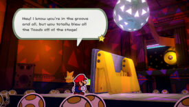 Go upstairs and you’ll run into two folded Black Shy Guys. Defeat them in battle, then head into the next room to find a… dance floor. Looks like the boss is in the other room. Listen to the DJ’s plea and bring him four DJ discs. You already have two so you’re already halfway there!