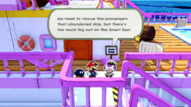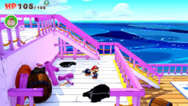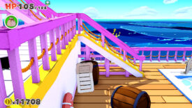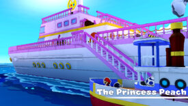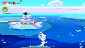 After witnessing the events involving Olly and one large boulder over in Sweetpaper Valley, head to the small cruise ship dedicated to the princess herself. Once there, step off the boat and walk up the steps to get onto the deck.