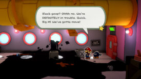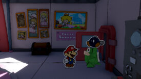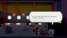Before going into the door with the golden frame, walk to the left to find a Toad stuck in the goop. Pull him out, then fight the Scuttlebug to open up the shortcut to the other hallway. The other door in the room is blocked so head into the VIP room.