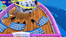 Smash four tentacles and Gooper Blooper will spit out goop. Now all four tentacles will smash down in succession. Fight off all four and Gooper Blooper will hop on deck. Avoid his goop attacks and the usual tentacle smackdowns. Wait for the spin attack, the weave between the incoming waves and smack his weak spot while he is dizzy. Now repeat the process several more times until the sea monster is no more.