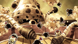 Walk through the door and pass through the hallway to the next door. The Engine Room! Save, walk down the steps, and take the heart if you need it. There’s also a hole near the bottom of the stairs. Hmmmmmm, feels an awful lot like a fight is about to go down! Approach the hole in the engine on the left and surprise! An ambush by folded Scuttlebugs. Slide the bugs so that there are two groups for hammer attacks and one line for a jump attack. For the second wave, twist the two outer rings to form a line with the other two Scuttlebugs, then slide to form a group.