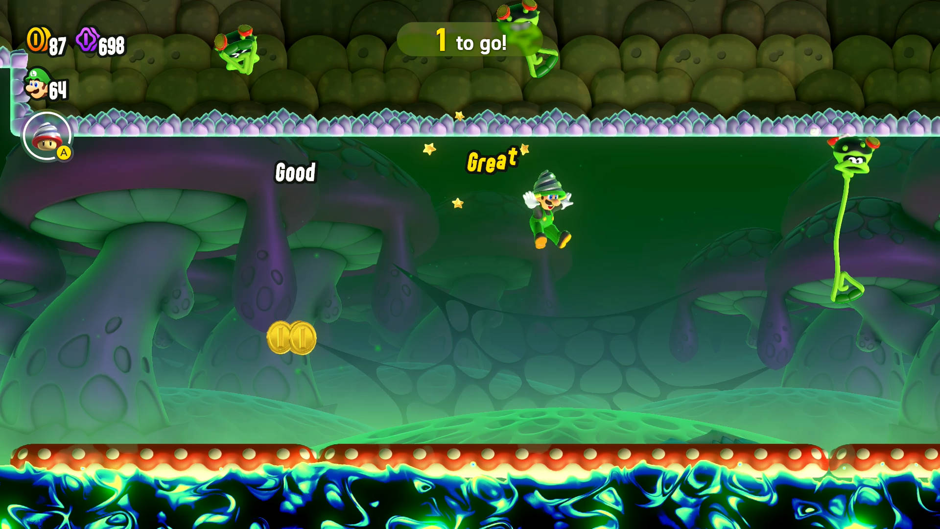 Here’s every Wonder Seed and Flower Coin in Taily’s Toxic Pond, the second level of Fungi Mines in our Super Mario Bros. Wonder walkthrough.