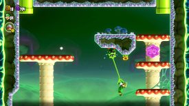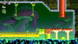 Before exiting the main area of the level, let one of the Taily enemies drop a spiked ball onto the flipping block below. If just one gets hit, this will allow you to enter the green pipe. In the secret area, simply run off the mushroom without dropping and you should cling to the Taily with ease.