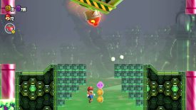 Hit the glowing tulip to bring up a warp pipe. Quickly jump over the Seeker Bullet Bills, then slide down the pipe and wall jump as soon as you grab the Flower Coin.