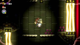 This one can be a bit tricky to grab. The Flower Coin is above a row of electric currents, a place that can’t be reached with a normal jump. Bubbles from your Bubble Flower should do the trick, but you can also grab one of the nearby enemies and drop them in the safe area. Once they wake up, bounce off them to get high enough to wall jump off the right side, then the left side.