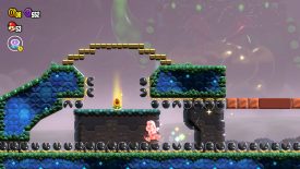 So, what are we looking for? This level has two Wonder Seeds and three Wonder Flowers to collect. No secret exit this time. You’ll also want to hop onto the top of the flagpole if you’re going for 100% completion.