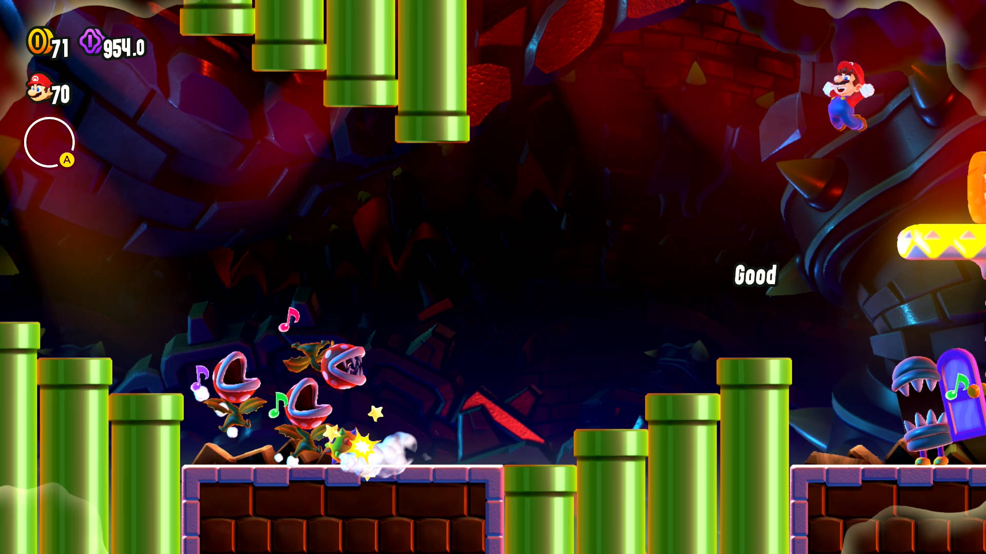 The entire level automatically scrolls and your job is to simply survive. Wonder effects from throughout the game appear as you go by including appearances from the charging Bulrush, the singing Trottin’ Piranha Plants, and the majestic dragon.