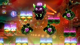 As the fight progresses, take note of the ground lights splitting into different sections. Each colored section will pop up at its own beat. The extra height in your jumps isn’t just for attacking Bowser, it’s also great for jumping over the lava Piranha Plant enemies that pass through either the left or the right. Once enough damage has been dealt, the button at the top of Bowser’s head will be exposed. Use the beat to reach the top!