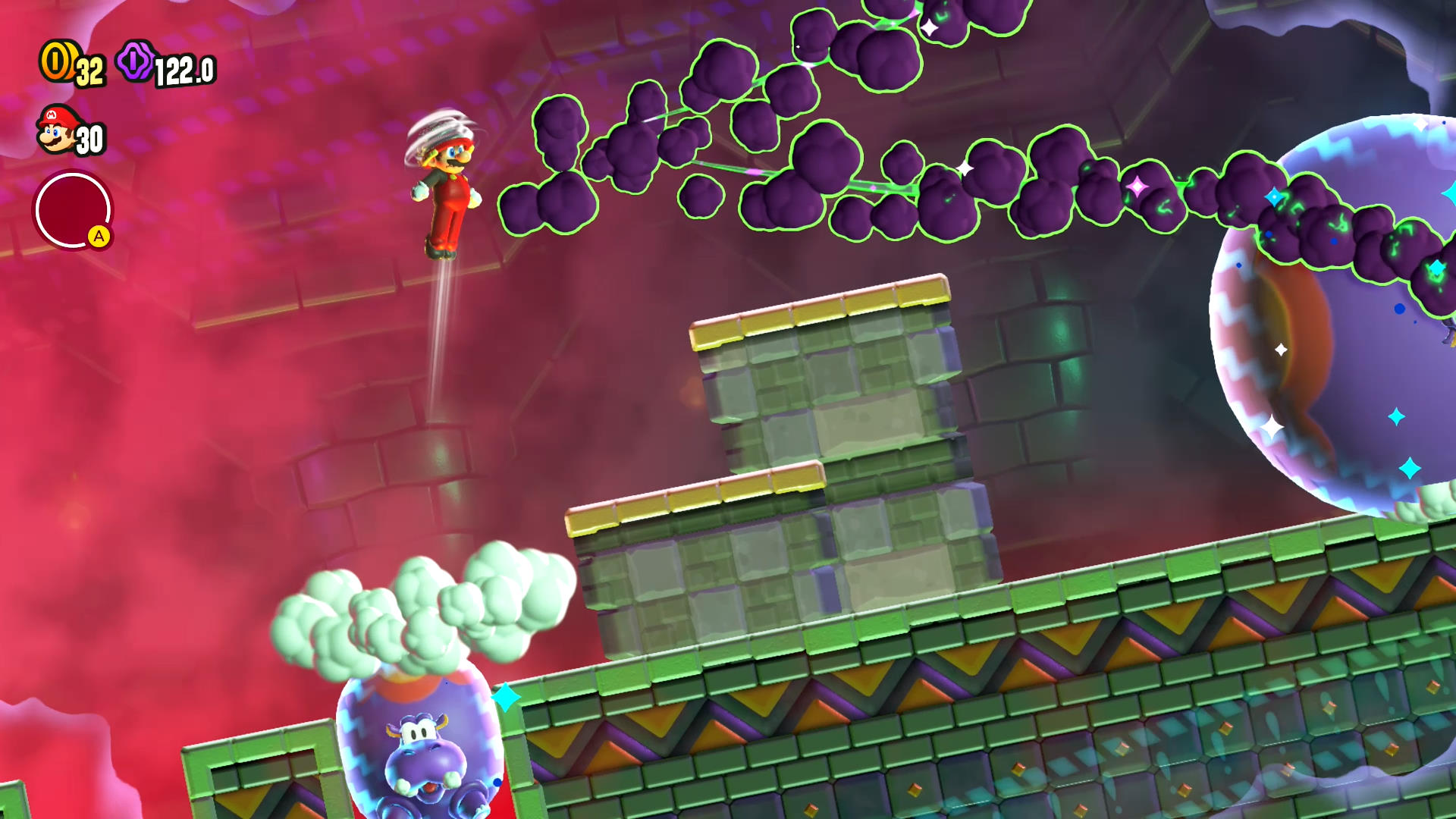 It’s a non-stop ride after you grab the Wonder Flower right at the start. There’s about five distinct section you have to get through to reach the end of the level where the Wonder Seed awaits. Don’t forget to grab the Drill Mushroom at the start!